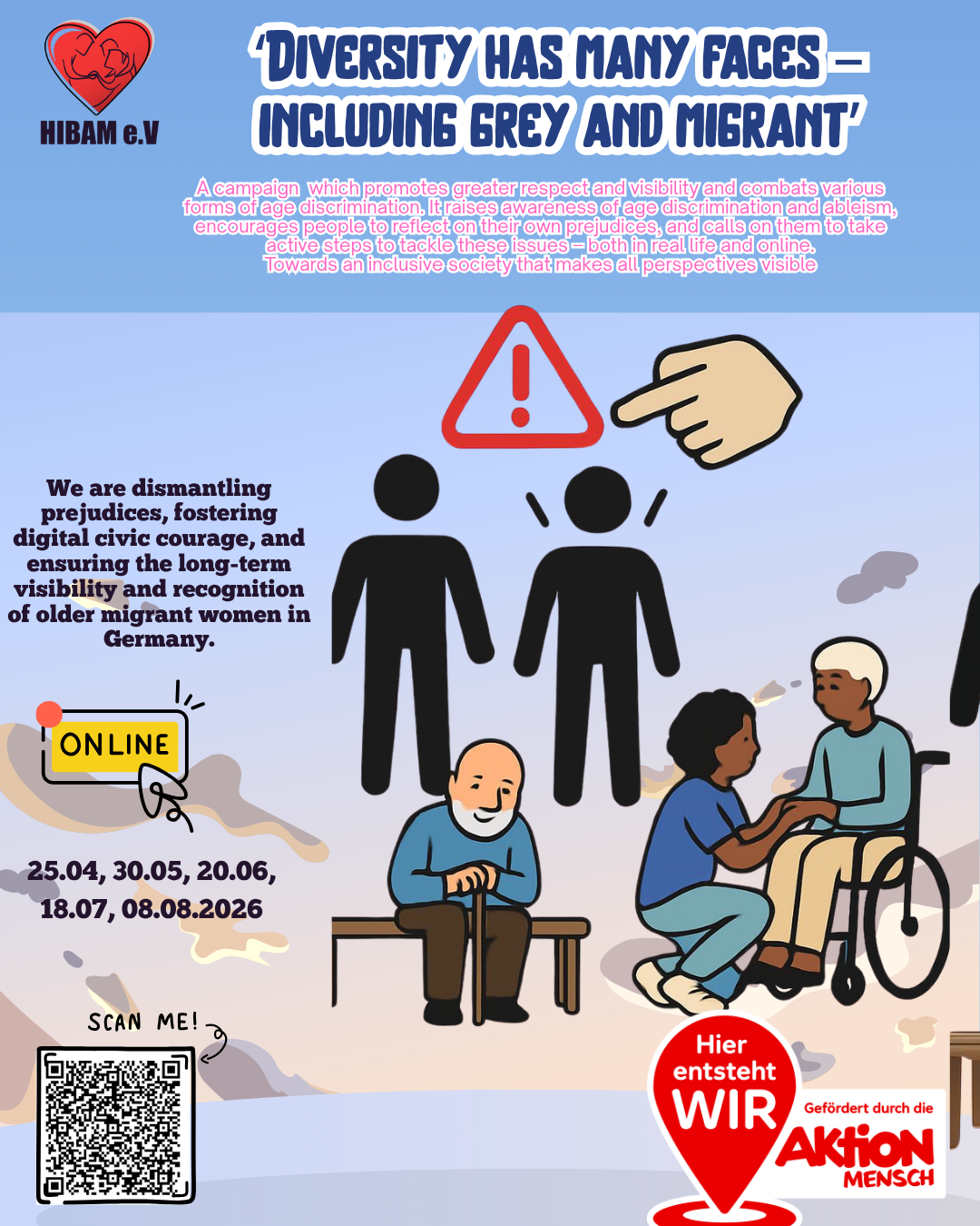 Wir bringen Sichtbarkeit dorthin, wo sie oft fehlt. Gemeinsam bauen wir Vorurteile ab, stärken die digitale Zivilcourage und setzen ein klares Zeichen für die Anerkennung älterer Migrantinnen in Deutschland.